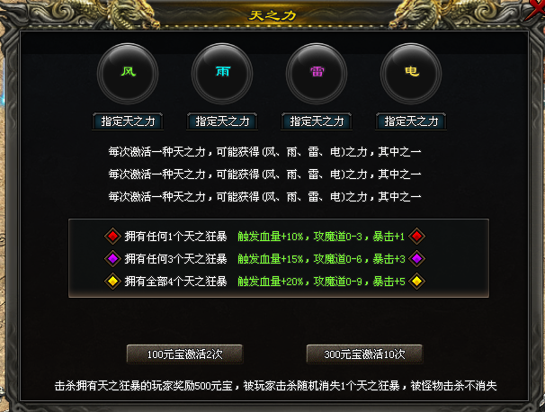 【泡点挂机】时间充足可手动或者挂机,泡点地图经验也非常丰厚, 技能】前期可多参与僵尸大殿打技能书残页的同时可获取书页后期强化技能。 【法道宠物】取消传统召唤浪费时间,商城出售法师宝宝卷轴及7级宠物卷轴。 【每日任务】50级后必做,玩法刺激且奖励丰厚。 聚 灵 珠】前期可多购买聚灵珠升级。 【拉镖,镖车奖励丰厚,多拉镖攒镇魂符起号致富也容易【许 愿 树】浇灌获得宝石碎片合成宝石ps:宝石拆分后碎片不绑定,【勋章】每日上香获得信仰碎片合成勋章:ps:小怪与boss都可获得沉香用于上香。 【加官进爵】议事厅国王处根据条件可自由选择爵位。 【灵魂大师】灵魂鉴定可获得相对的属性ps:详情点击npc。【唤 灵 炉】武器可通过唤灵石解封封印获得属性ps:详情点击npc。镇 魂 家】携带镇魂符10枚可进入地图,地图随机刷新强大的boss。翅膀】羽毛可升级绚丽的翅膀:拆分翅膀羽毛全部返还哦,【神级奖励】为激励玩家升级,冲级奖励npc大量珍贵道具放送。 |